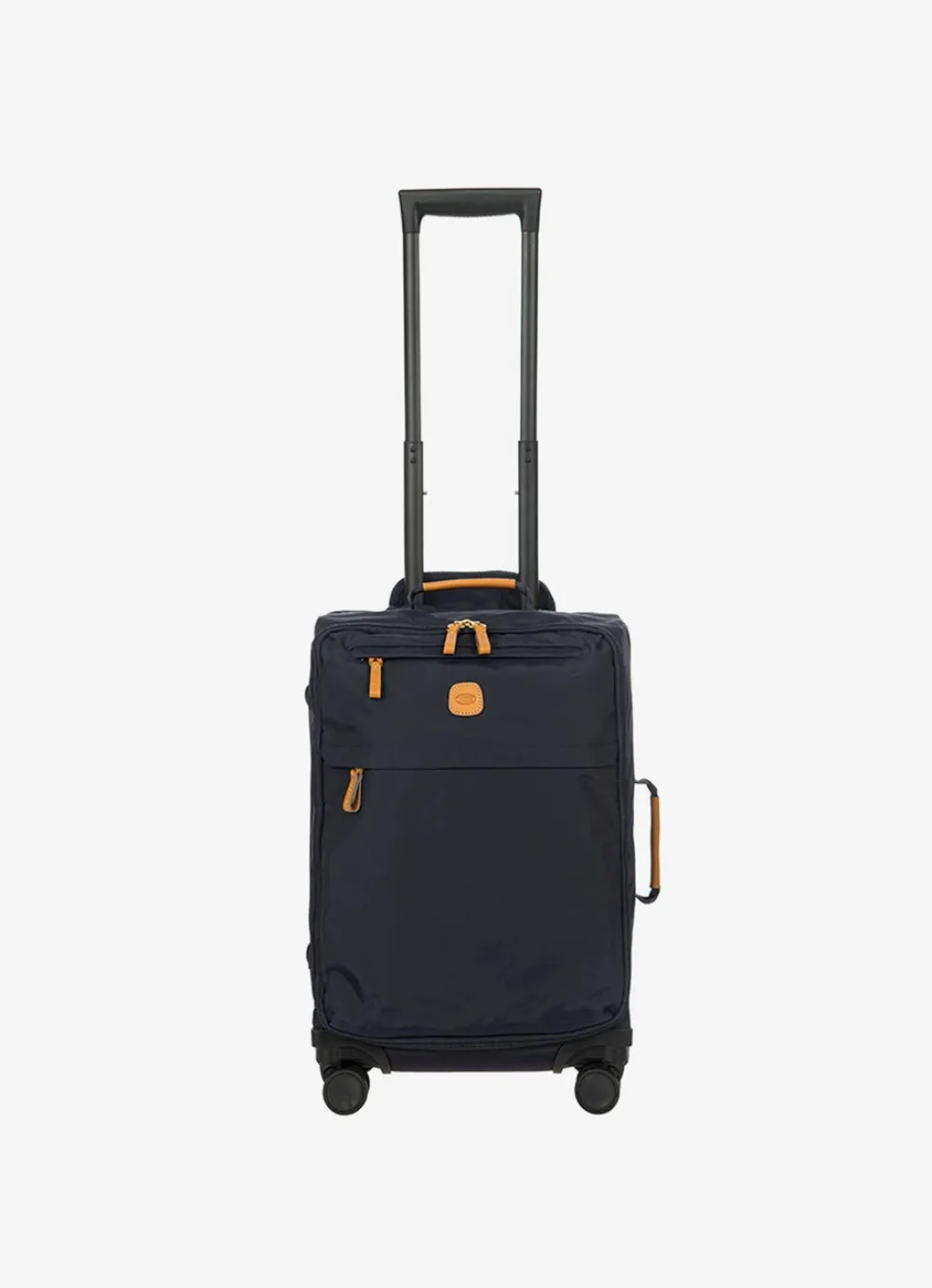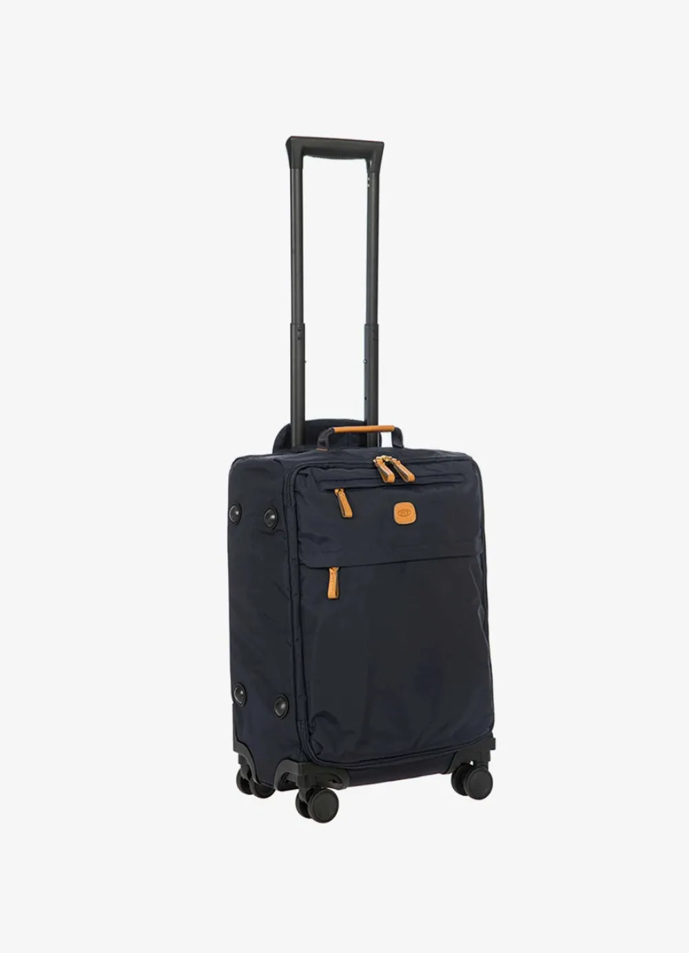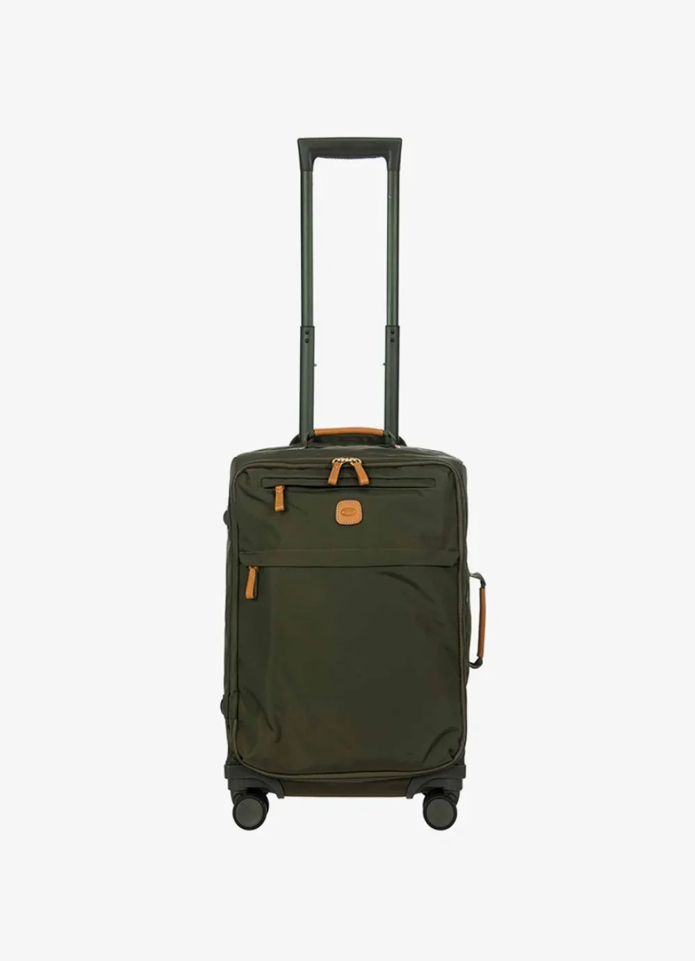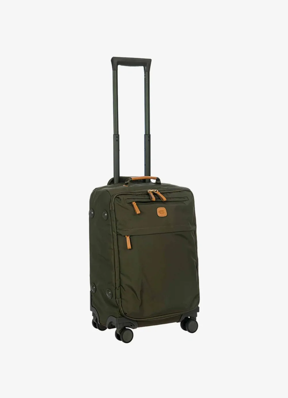 This carry-on trolley from the X-Travel collection is made from satin nylon and has leather details.