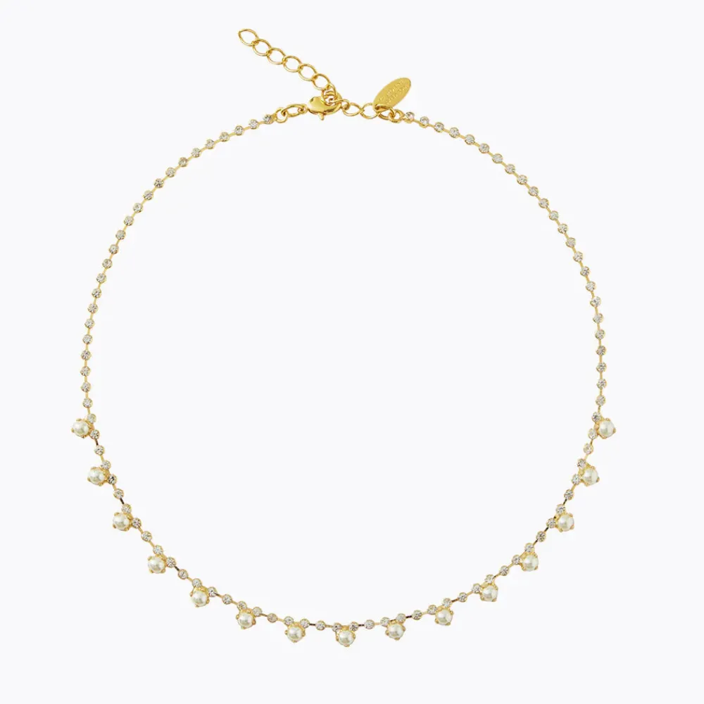 Discover our Lily Necklace, a harmonious blend of elegance and sophistication. This stunning piece is adorned with a glistening combination of crystals and pearls, delivering maximum glamor. Wear it solo for a statement of grace or layer it with other necklaces for a chic, stacked look.