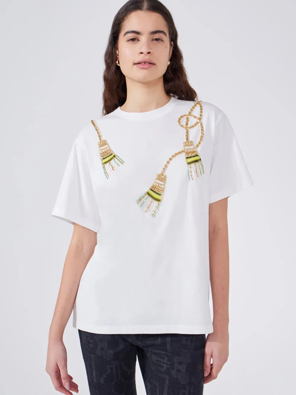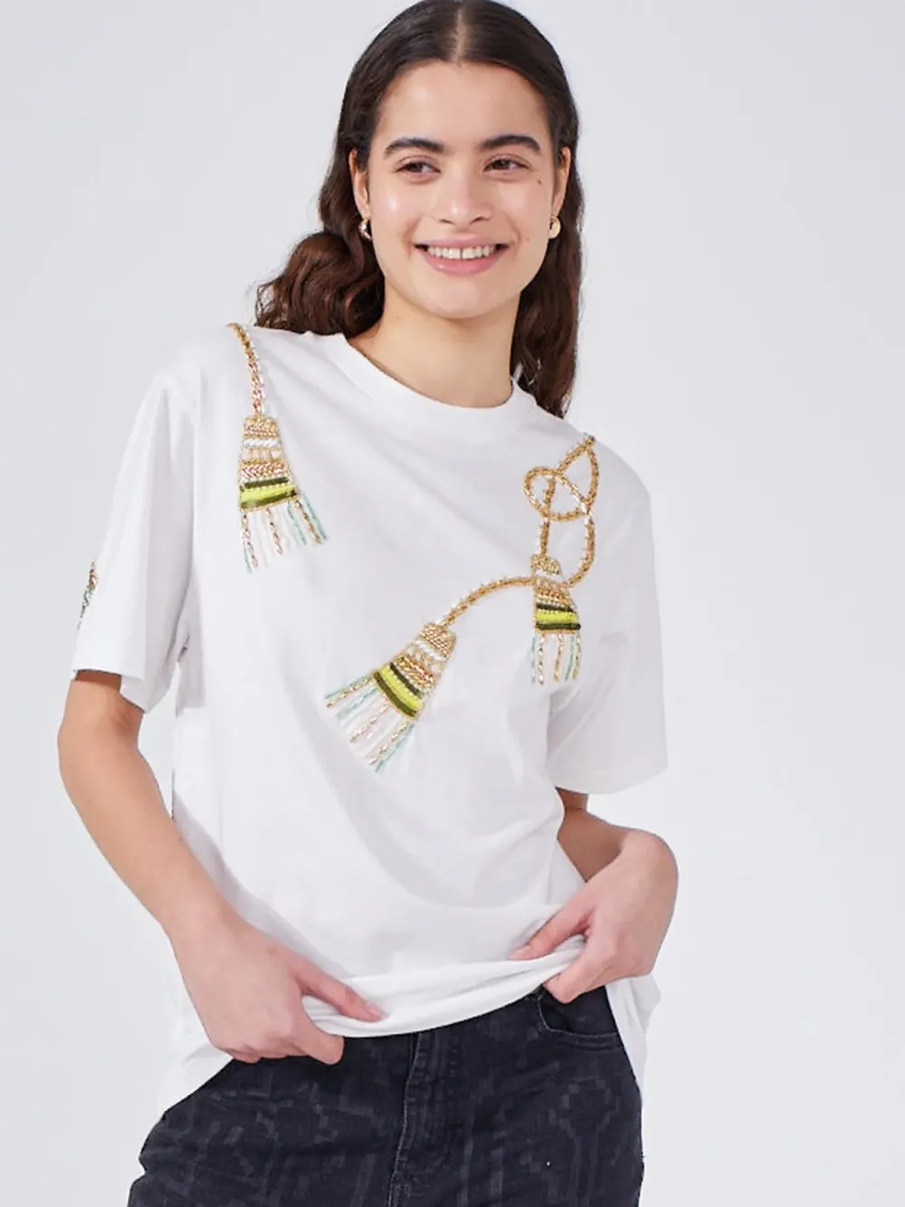 A true Hayley Menzies classic, their Tassel T-Shirt is back by popular demand – and even better than before. Tassels are hand-beaded by artisans in India and deliberately smaller for a more balanced look.