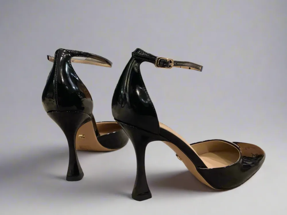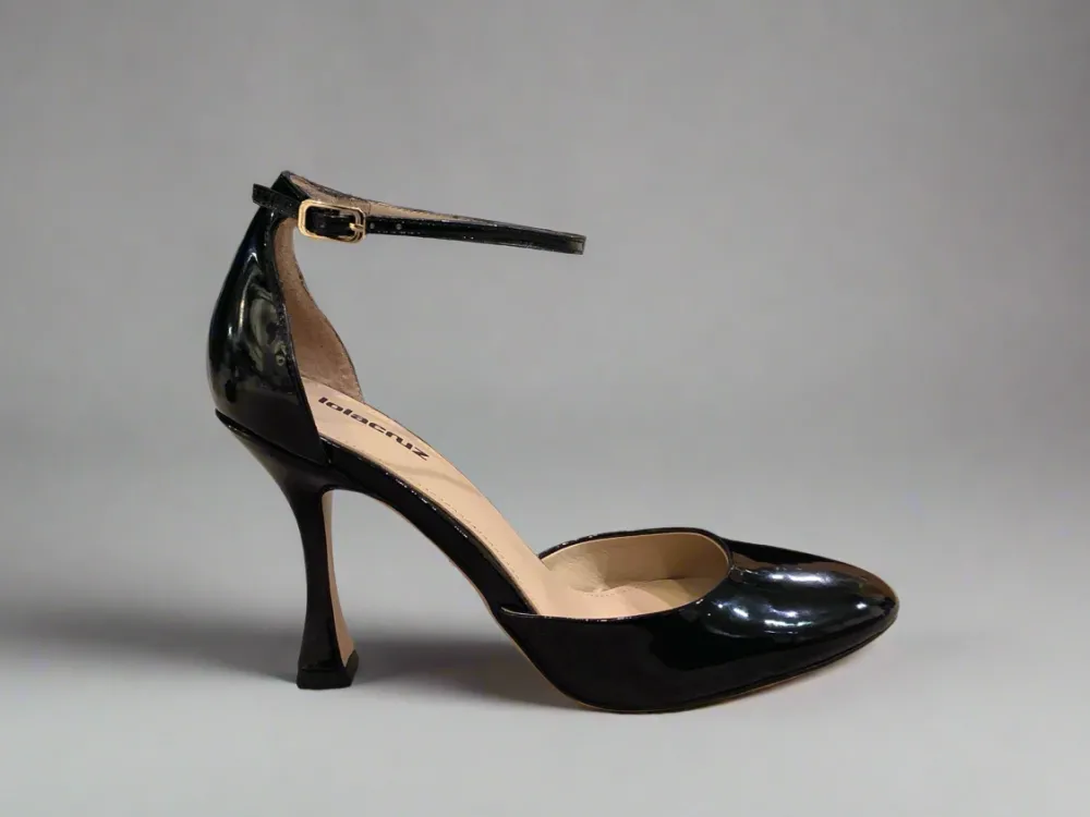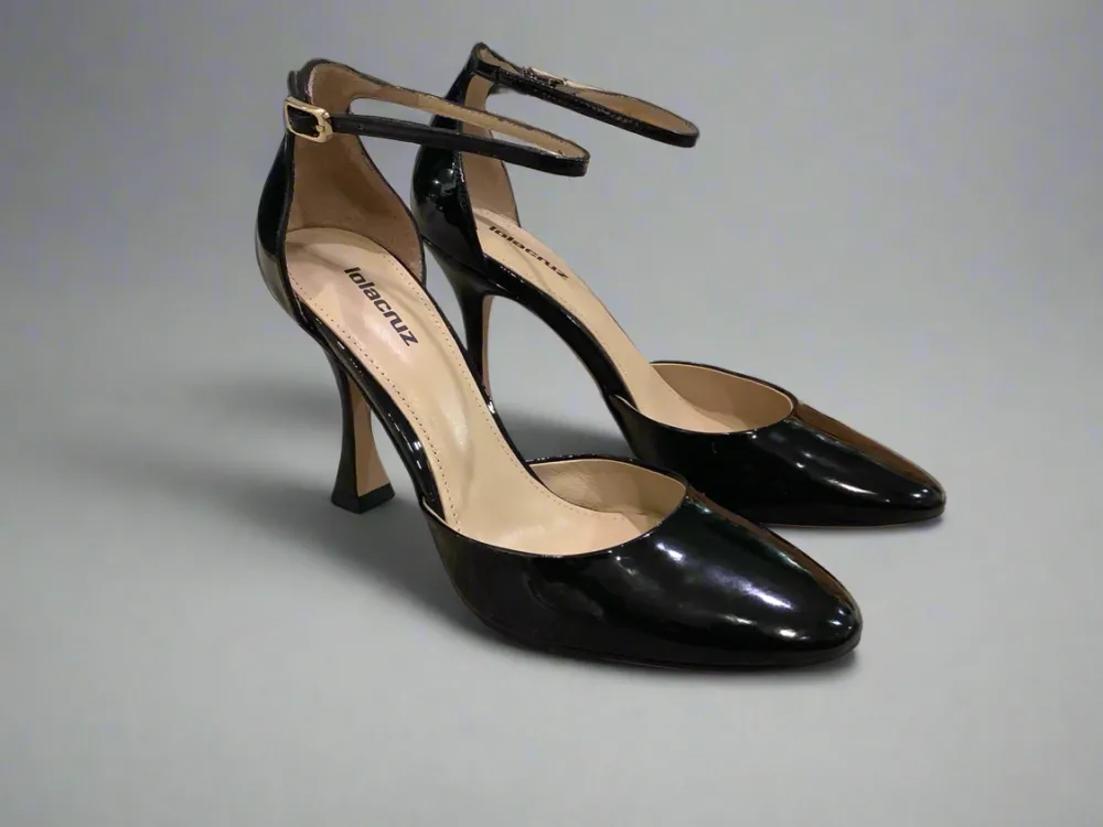 Elevate your style with the Lola Cruz ‘Mara’ Court Shoe. This patent high heel ankle strap court shoe exudes sophistication and elegance, perfect for any luxurious occasion. Its sleek design and secure ankle strap will add a touch of class to any outfit. Step into the world of refined fashion with this exclusive shoe.