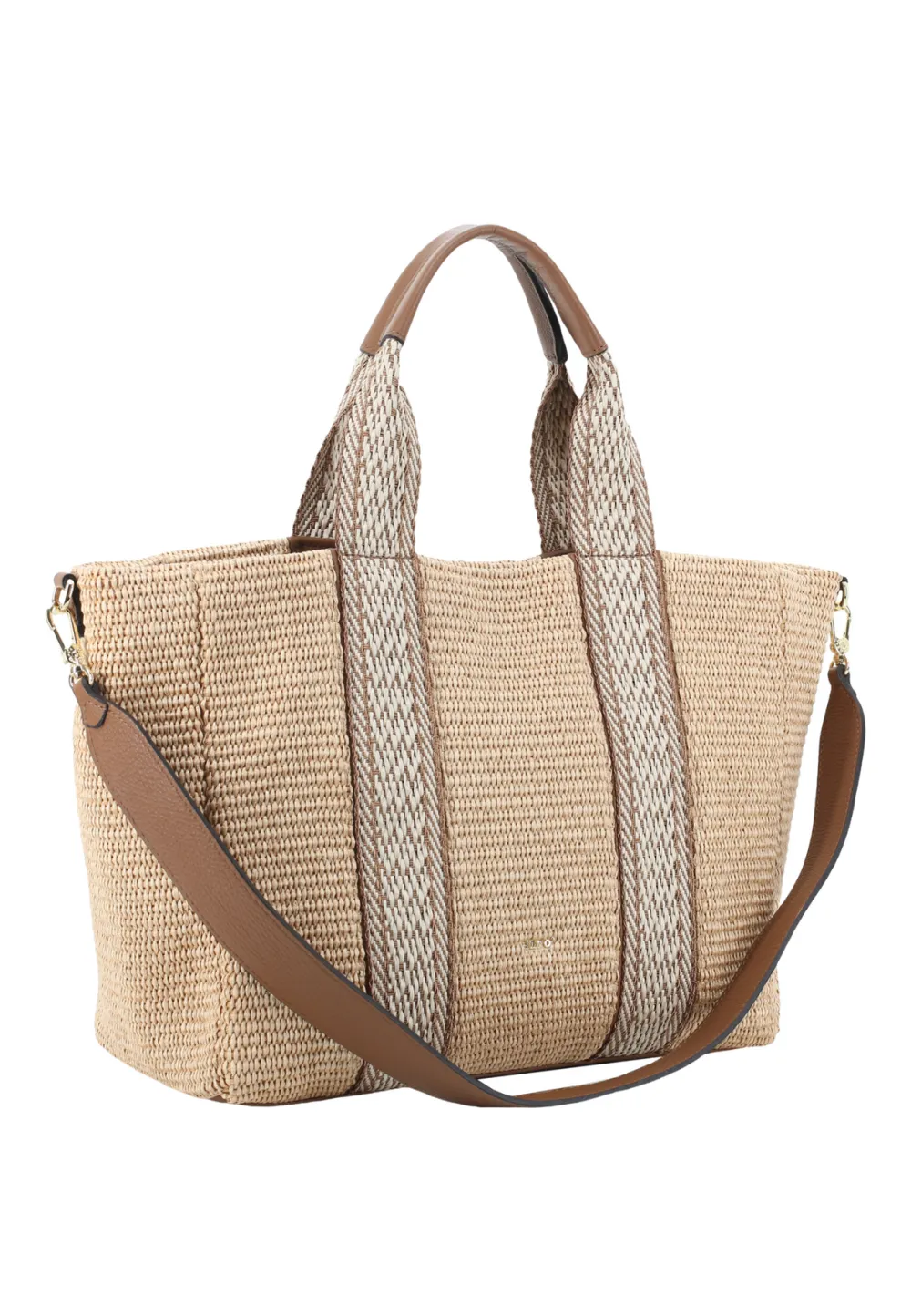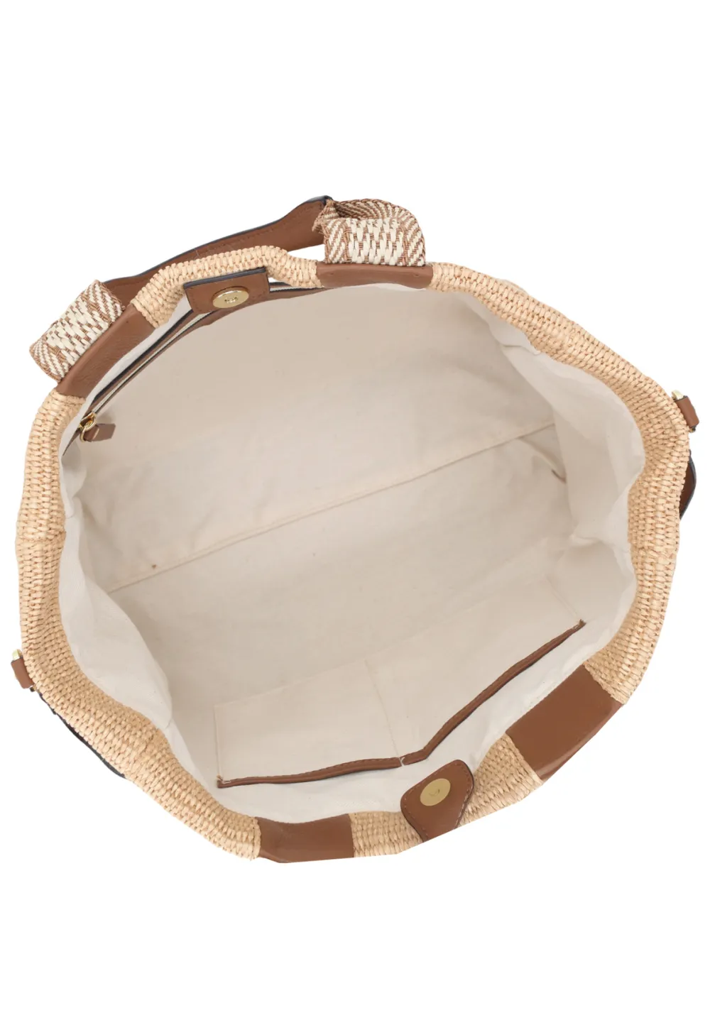Raffia woven+ One main compartment with magnet closure+ Inside drei compartments, one with zip+ Additional, detach…
