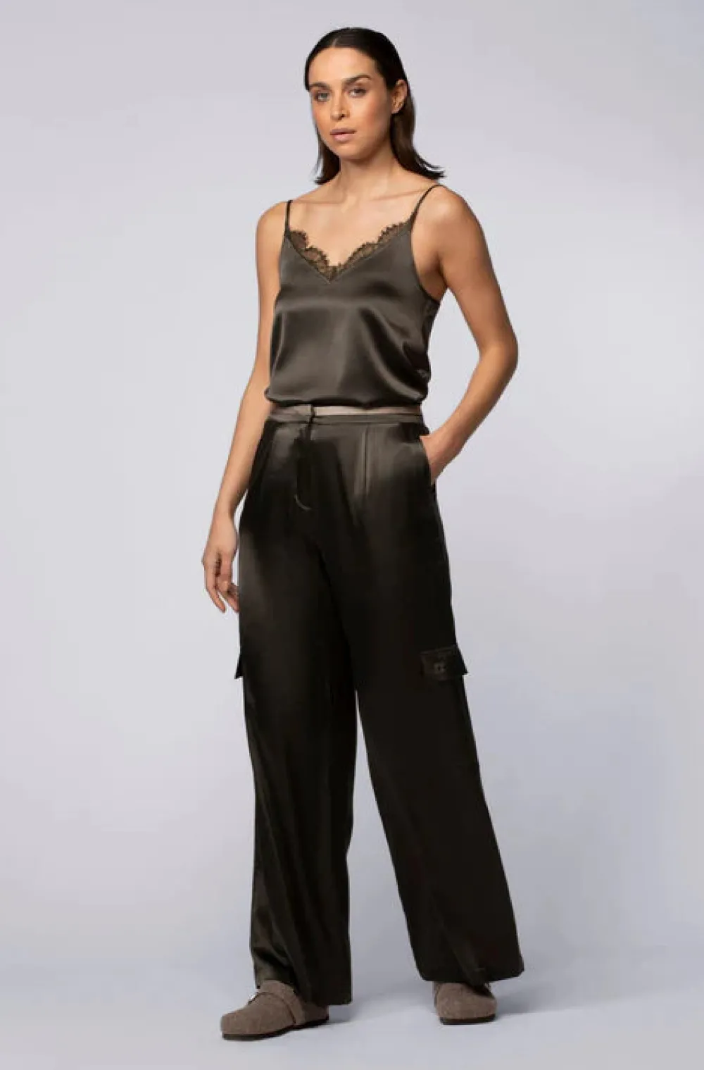 – Cargo silk pants with lining